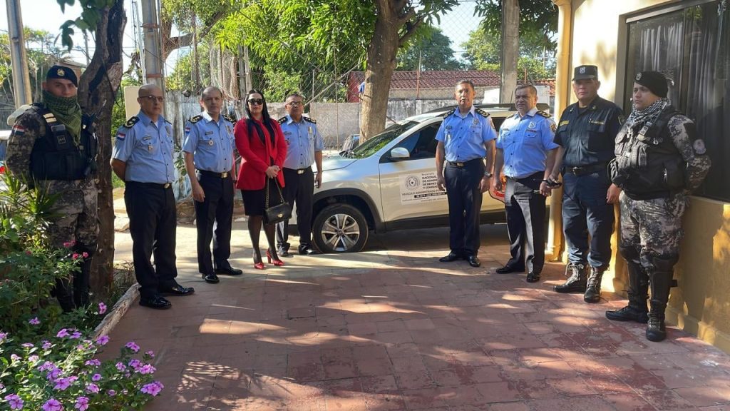 Autoridades componentes del Comando Institucional de la Policía Nacional visitaron la Comisaría 8ª Metropolitana, ubicada en barrio Roberto L. Pettit, de Asunción, donde hicieron entrega de una patrullera a dicha dependencia, a los efectos de fortalecer la labor policial en esa zona de la ciudad de Asunción.