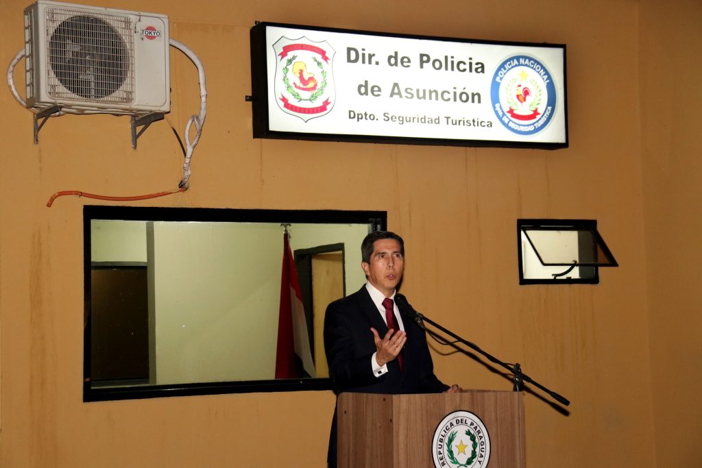 El ministro del Interior, Federico A. González, participó este jueves de la rehabilitación y mejoras edilicias de dos Casetas de la Policía Nacional ubicadas en la Costanera Norte, de Asunción, en el marco del Proyecto de fortalecimiento de la seguridad ciudadana.