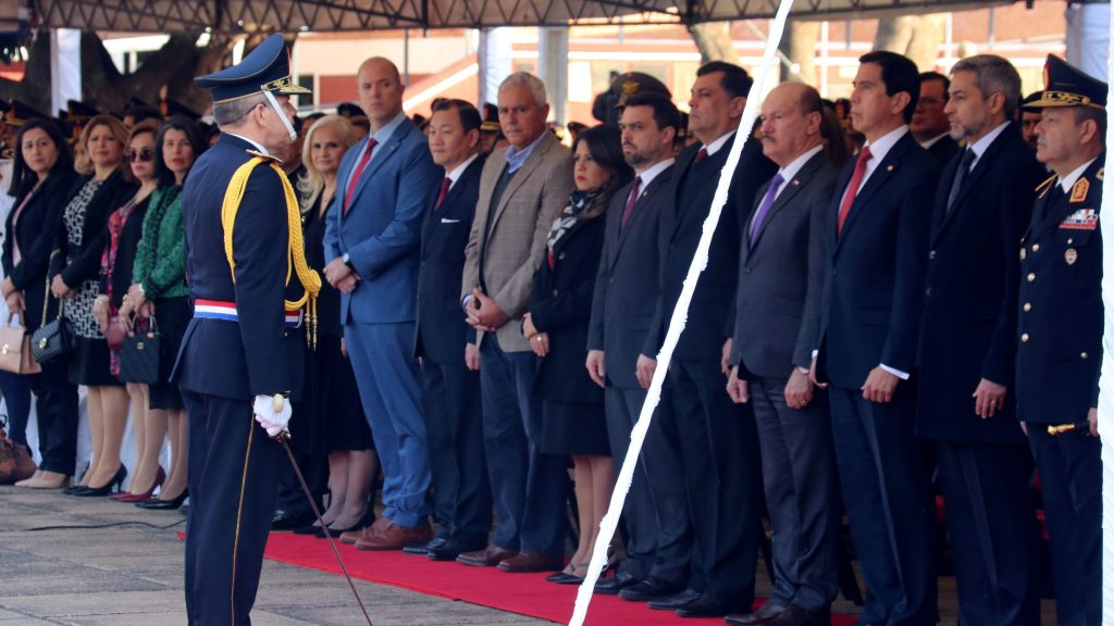 El Ministro del Interior, Federico A. González, acompañó al Presidente de la República, Mario Abdo Benítez, en la ceremonia que se cumplió en el patio de Honor “Oficial Inspector Rodolfo Adrián Colmán”, de la Academia Nacional de Policía, Gral. José E. Díaz, en la ciudad de Luque.