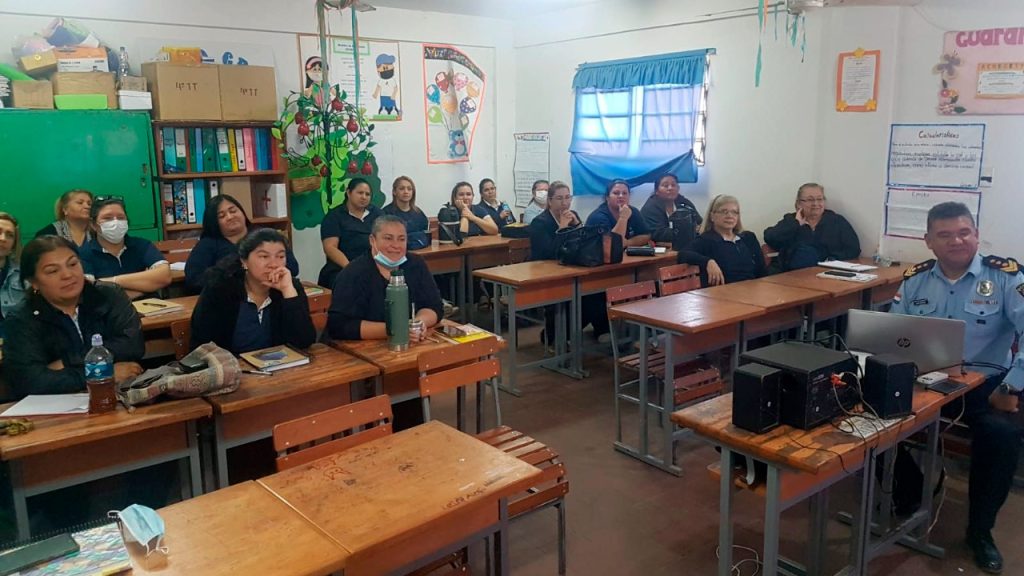 En esta ocasión, la charla de prevención sobre “Violencia Intrafamiliar” se realizó en la Escuela Básica N° 14.716 Municipal Marangatu Rape de Viñas Cué, del departamento Central, dirigida a los docentes de los turnos mañana y tarde.