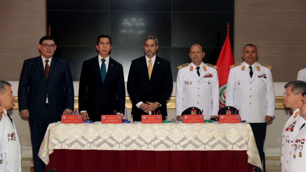 El Presidente de la República, Mario Abdo Benítez, acompañado del Ministro del Interior, Federico A. González y el Viceministro de Seguridad Interna, Comisario General (R) Mateo Cuellar, dio apertura al Tribunal de Calificaciones de la Policía Nacional que se reúne en sesión ordinaria en la sede de la Comandancia.
