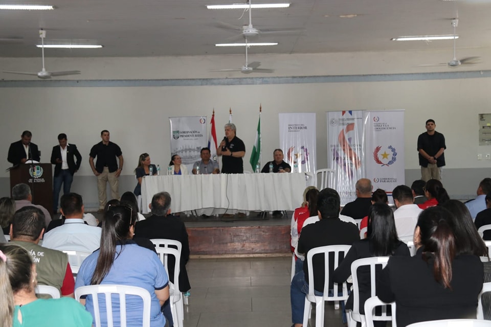 El Ministro del Interior Enrique Riera, en compañía del Viceministro de Asuntos Politicos Oscar Campuzano y el Comandante de la Policía Nacional, mantuvieron una reunión con el Gobernador, intendentes, Concejales Municipales y Departamentales y la Sociedad Civil del Dpto. de Pdte. Hayes, en la ocasión del cierre de las jornadas del 2023, en el marco del Programa “Fortalecimiento de la Gobernanza Local” del Gobierno del Paraguay que promueve la descentralización e impulsa la participación ciudadana para mejorar la seguridad integral en los distintos departamentos del país.