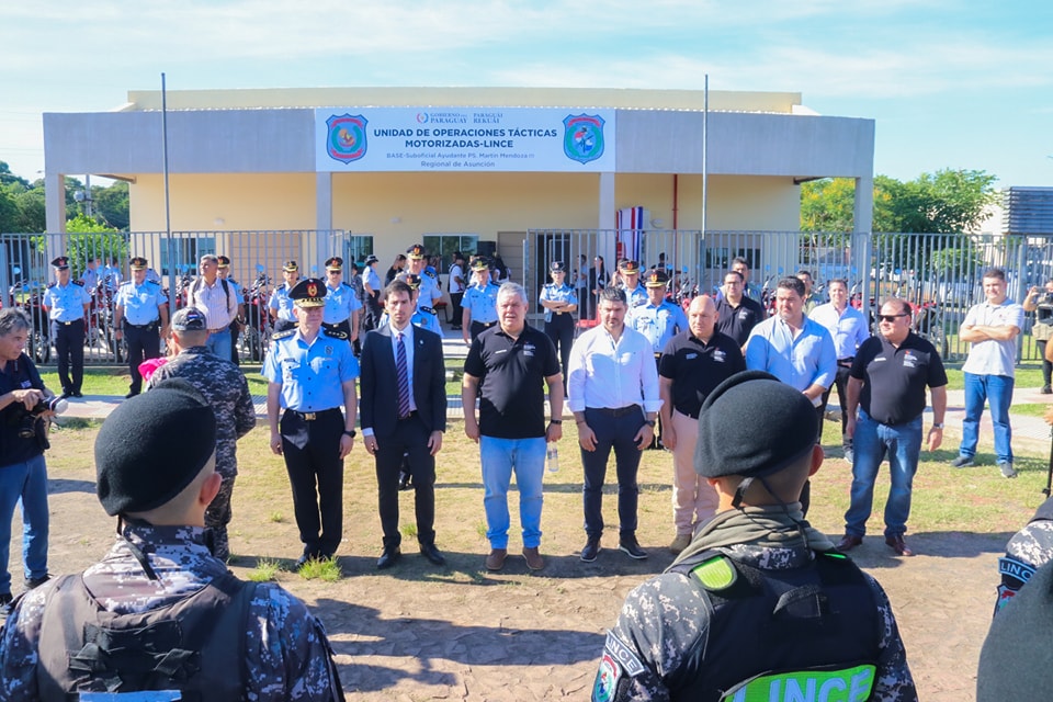 El Ministro del Interior, Enrique Riera, en compañía del Comandante de la Policía Nacional y el Intendente de la ciudad de Asunción, Óscar Rodríguez, habilitaron las bases de operaciones del Grupo Lince, en la Costanera Norte y Costanera Sur, “suboficial ayudante, Martín Mendoza”, construidas con el apoyo de la Municipalidad de Asunción.