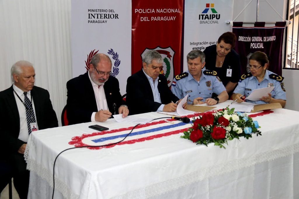 Rubricaron sus firmas por la Policía Nacional, el Comandante de la Policía Nacional y la Crio. Gral. Insp. Graciela Medina Insfrán, Directora de Sanidad Policial y por la Fundación TESAI, Enrique J. Sosa Duarte y Dr. Fernando Bittinger Rolón.